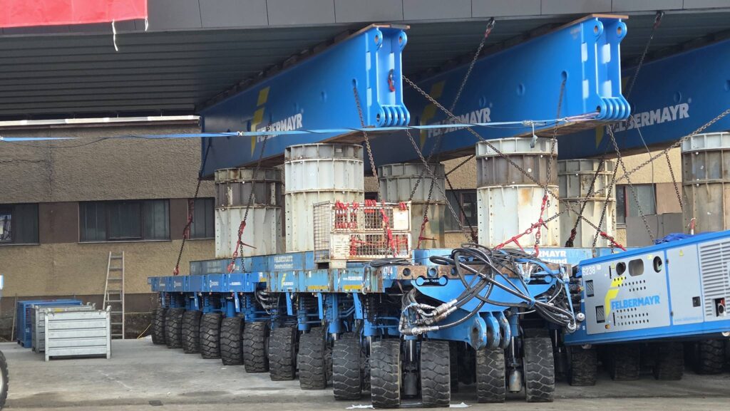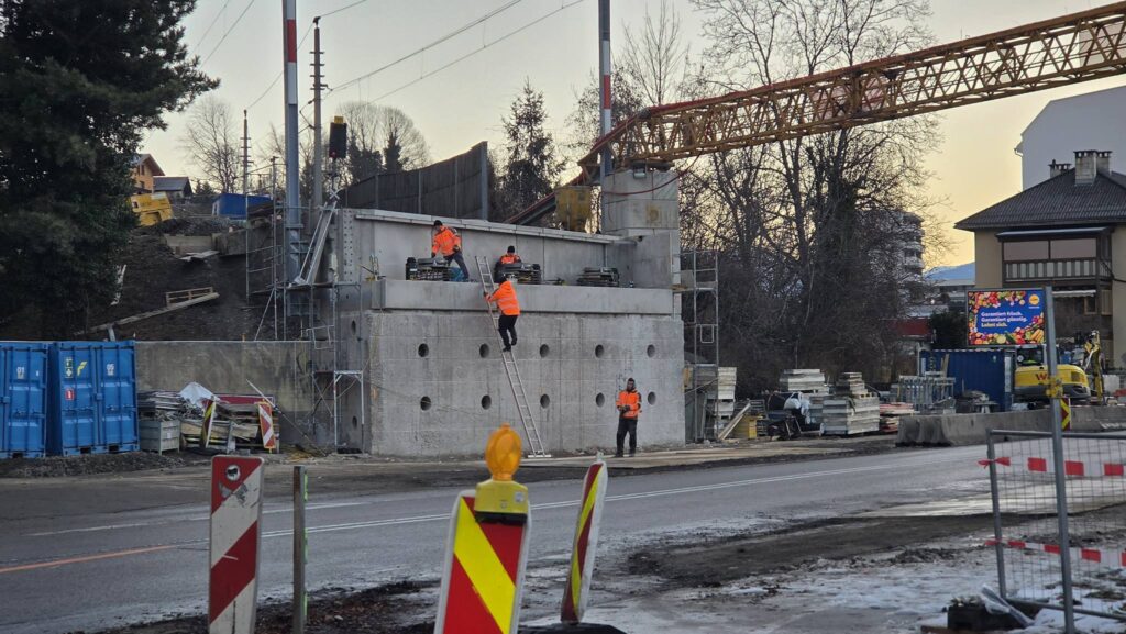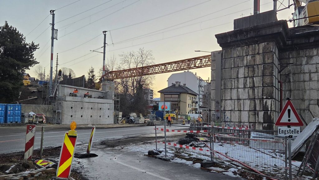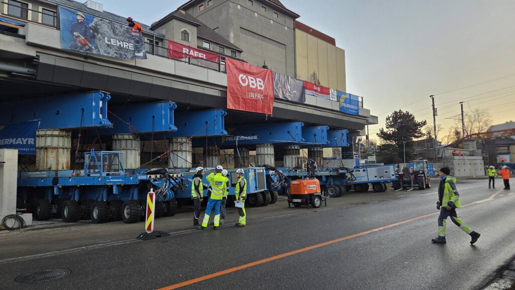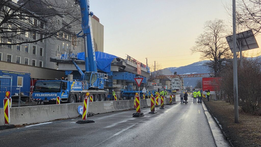 LA DI Evelyn Achhorner: Die neue Eisenbahnbrücke auf der Hallerstrasse eingehängt. Sie wurde schon fertig gebaut, wird nun von hydraulischen Hebebühnen gehoben, gedreht und zwischen die Auflager eingehängt. Wird spannend … Viel Erfolg!!